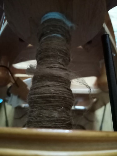 What I planned to do and what I achieved: I am doing the challenge today, whoooo hooooo. I am spinning some Shetland in natural shade Moorit, 100g bump and 25g that was in British Breeds Sample pack, both from World of Wool. I split the larger amount into two by holding the two ends together, finding the middle and separating into two equal amounts at that point. Then with the sample amount, I split that into two the same way but then stretched each out to the same length as the larger bumps and spun both the sample and the larger bump at the same time in each case so that the fibres mixed.